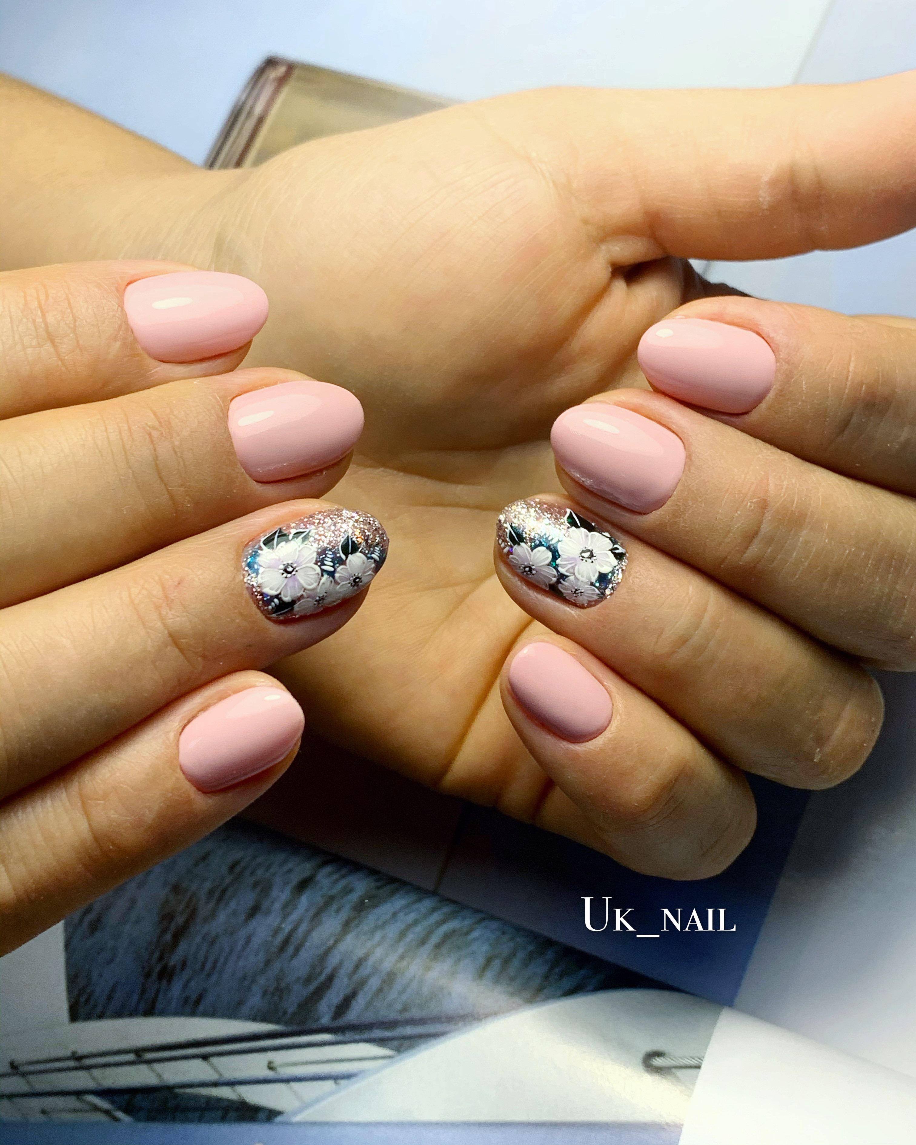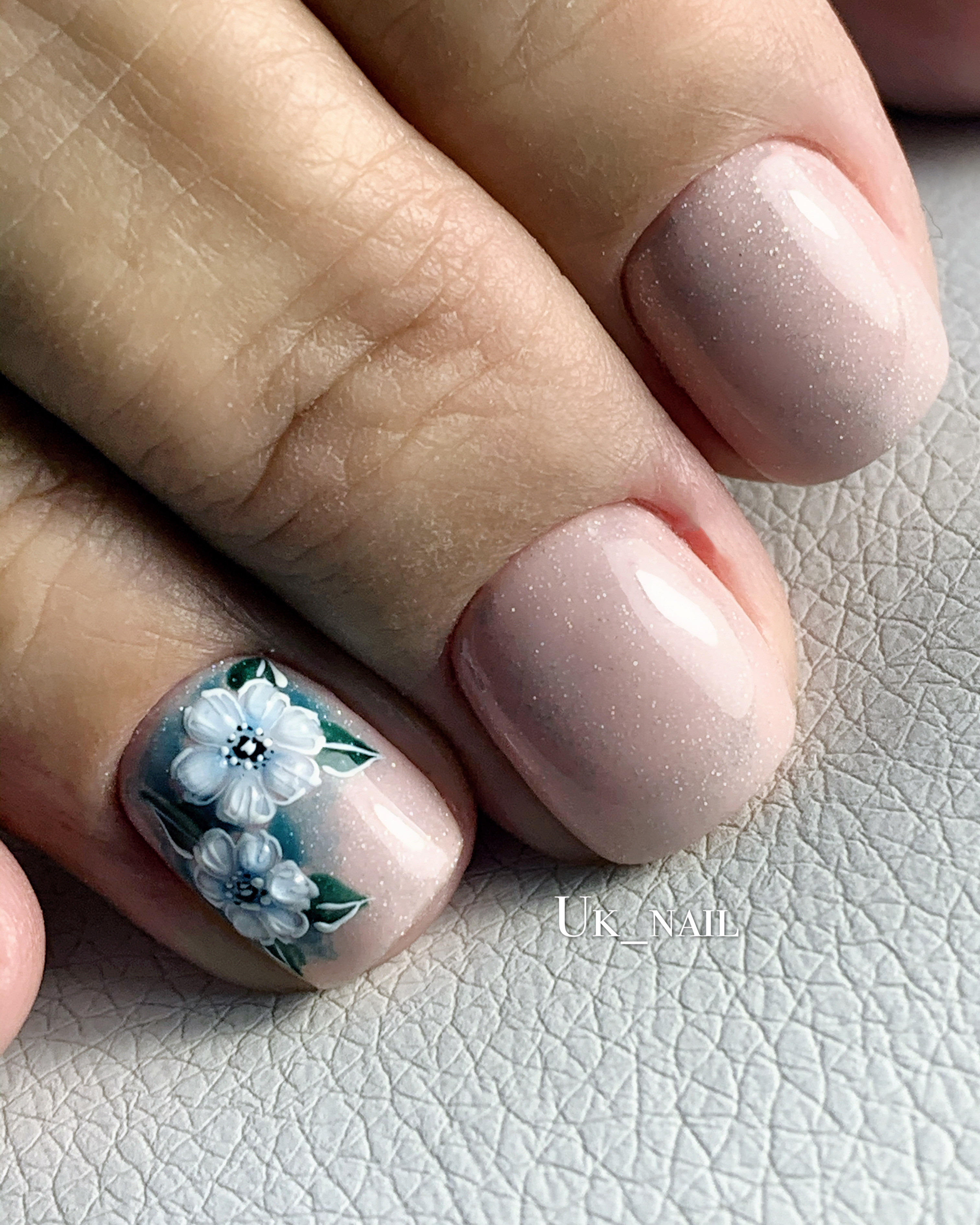 Лёгкий весенний дизайн маникюра с рисованной орхидеей ествено.