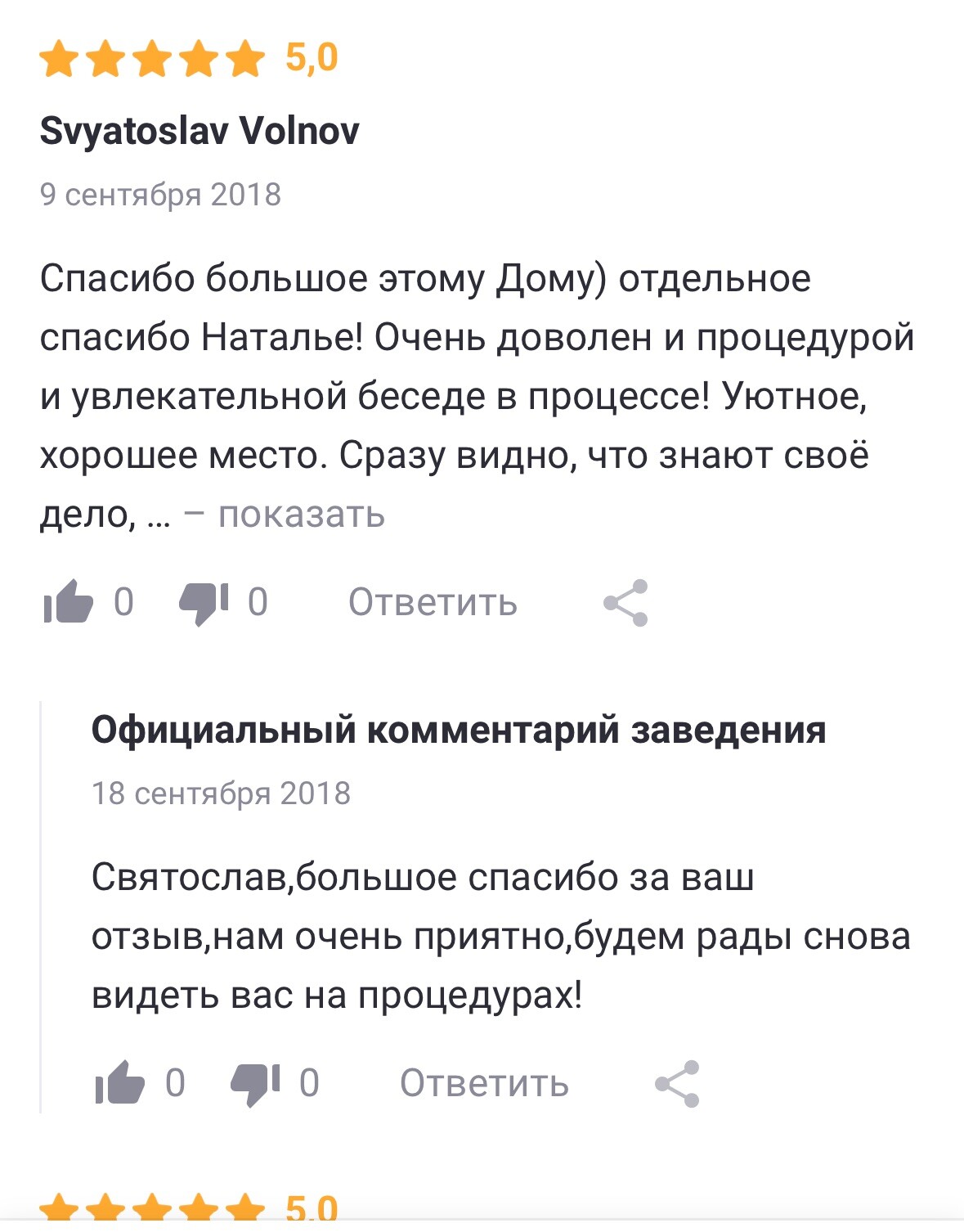 Процедура просто шикарная))) расслабляющая. Как будто заново родилась))) желаю успеха вам в вашей работе и побольше клиентов)